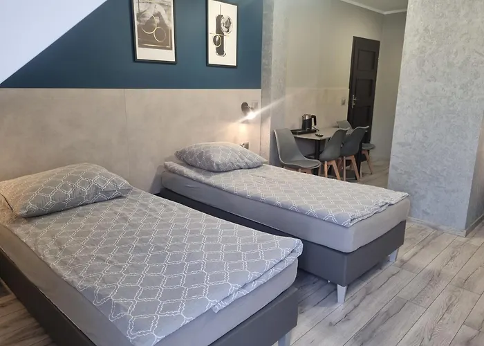7-pokojowy Apartament Przystań położony jest 2 km od Parku Pałacowego i oferuje wspólne udogodnienia do kuchni dla samodzielnego przygotowywania posiłków. Do Łowiska Rusiec można dojść w ciągu prawie 10 min jazdy samochodem spacerem od obiektu noclegowego.